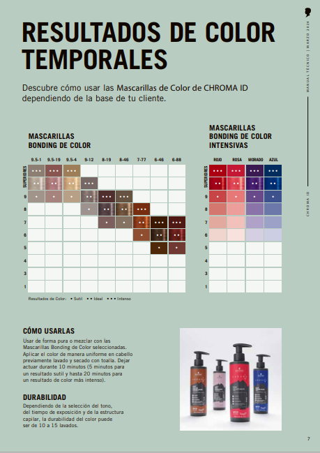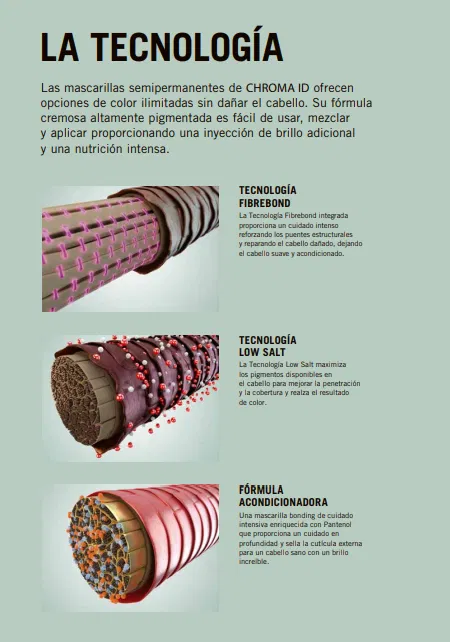 Las Mascarillas Bonding de Color de Chroma ID contienen una fórmula cremosa altamente pigmentada que es fácil de mezclar y aplicar proporcionando una inyección de color radiante adicional y un cuidado intenso.