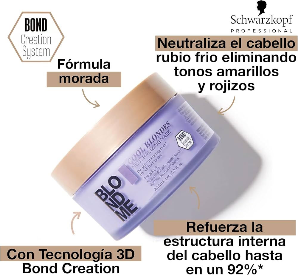 Fortifica la estructura interna del cabello hasta en un 90% cuando se usa junto al Champú Neutralizante para Rubios Fríos