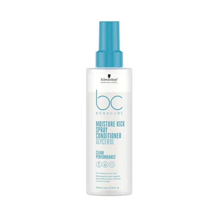 El acondicionador en spray Bonacure Moisture Kick Glycerol de Schwarzkopf Professional es un acondicionador vegano sin enjuague que proporciona hasta 48 horas de hidratación al cabello normal a seco, ondulado o rizado. Desenreda el cabello y mejora la manejabilidad del cabello. El acondicionador en spray ofrece protección contra el calor para garantizar un brillo y una elasticidad magníficos. Contiene glicerol que equilibra los niveles de hidratación del cuero cabelludo y del cabello a la vez que previene la sequedad.