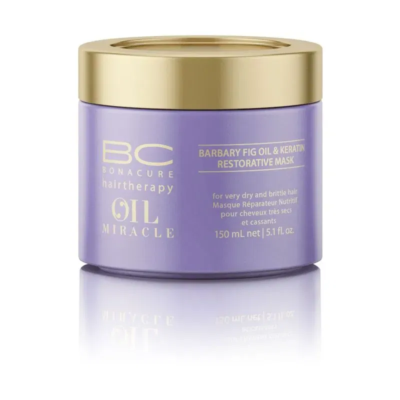 Schwarzkopf BC Oil Miracle Barbary Fig Oil & Keratin Mask es una máscara reparadora que repone el cabello muy seco, quebradizo y procesado con hidratación y brillo.